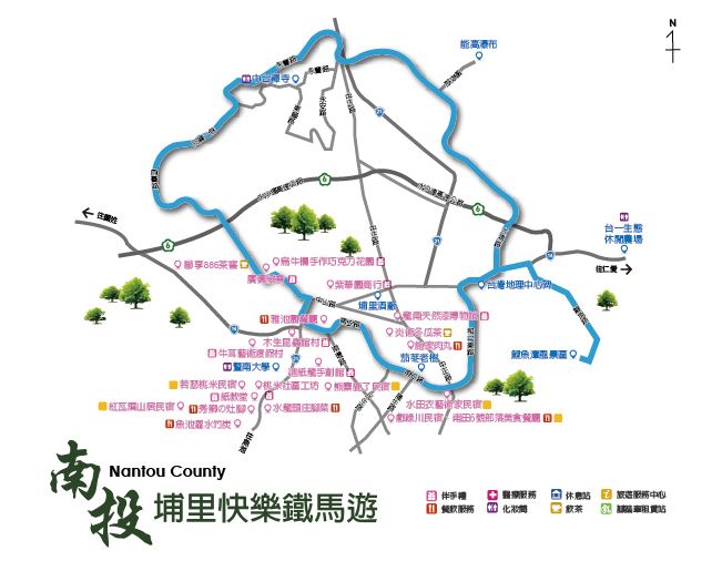 我們提供前來住宿的朋友自行車租借服務,只要是在入住時間以內,便可以免費借用自行車。 以下為埔里主要自行車路線: